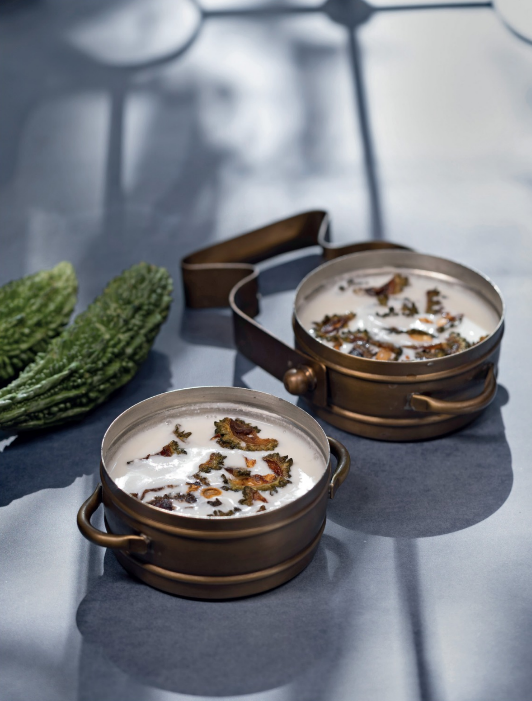 A gentle ash gourd and black-eyed pea stew in thin coconut milk, finished with coconut oil.